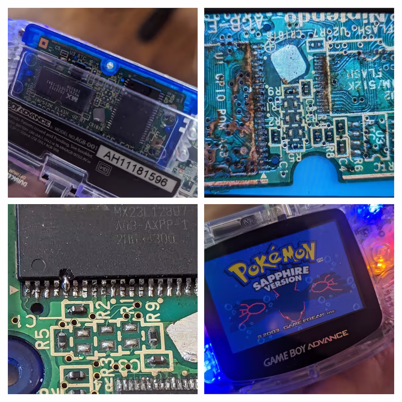 On the Console Repair Discord I'd offered to fix a Pokémon Sapphire cart that was initially not working, but then went to a repair shop and came back with a leg on one of the chips missing.